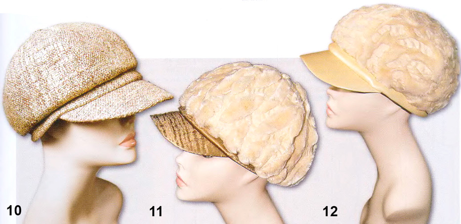 Рассмотрим некоторые ошибки, которые могут возникнуть при выполнении козырька и соединении его с головкой головного убора. Так, козырьки кепи на илл.10-12 выполнены по одним и тем же лекалам, но выглядят они по-разному. На илл.11 козырек хорошо сформирован, околыш выполнен правильно — изделие смотрится аккуратно. На соседних фото: при пошиве изделий были допущены ошибки.