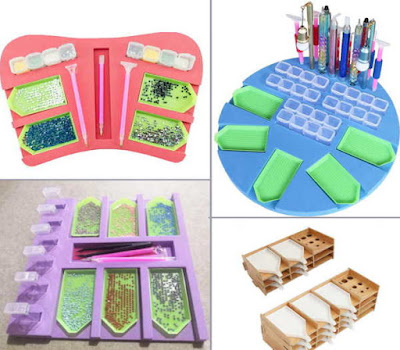 Мольберт и станки для полотна алмазной мозаики. Довольно удобное, но дорогое приспособление. Встречаются и более дешёвые мольберты и подставки. Стоимость от 500 рублей. Кроме этого, в продаже можно найти обычные стилусы, пинцеты, лоточки, стразы и т.д. отдельно и оптом. Встречаются огромные наборы инструментов, с разнообразными приспособлениями. Стоимость их довольно высока. В зависимости от комплектации цена колеблется от 500 до 3000 рублей.Читайте ещё об алмазной вышивке: